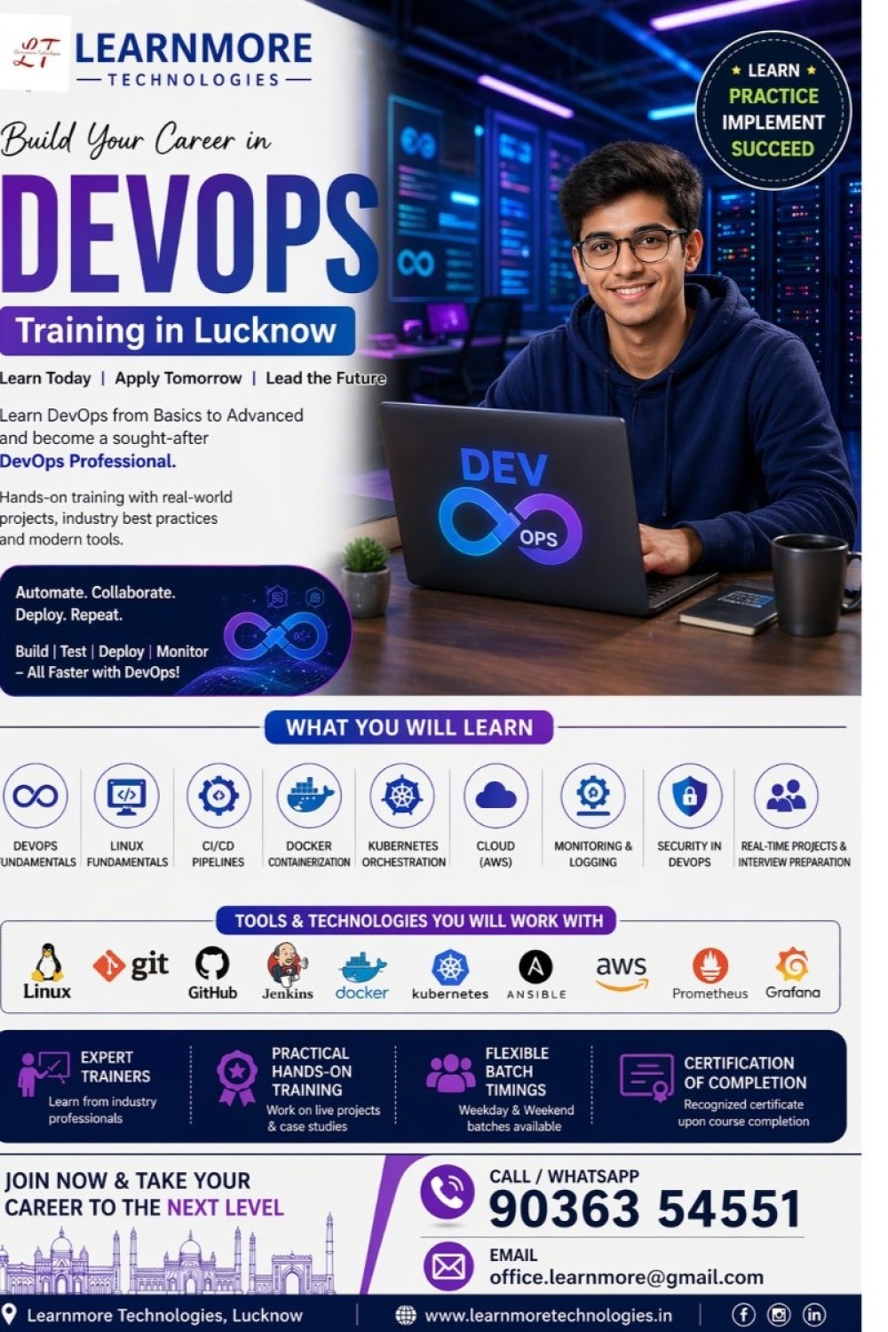 Whether you are starting your career or looking to switch into a high-demand IT field, our DevOps course in Lucknow is the perfect choice. Join Learnmore Technologies and take the next step toward a successful tech career.