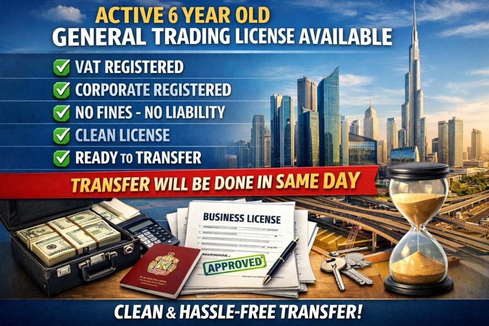 #GeneralTradingLicense #DubaiBusiness #UAEBusiness #LicenseForSale #BusinessSetupUAE #VATRegistered #CorporateTax #NoFines #CleanLicense #ReadyToTransfer #DubaiOpportunity #BusinessForSale #EntrepreneurUAE #SameDayTransfer