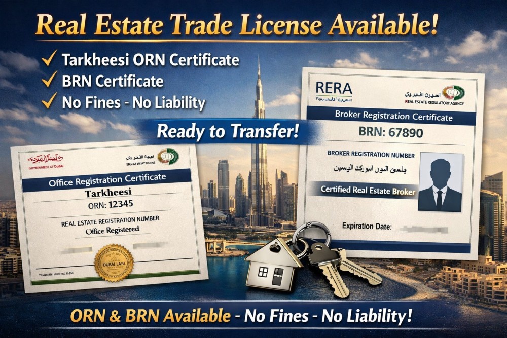 #RealEstateDubai #TradeLicenseForSale #DubaiBusiness #BusinessOpportunity #DubaiLicense #RealEstateLicense #ORN #BRN #DubaiBroker #PropertyBusiness #UAEBusiness #LicenseTransfer #DubaiMarket #BusinessForSale #DubaiRealEstate