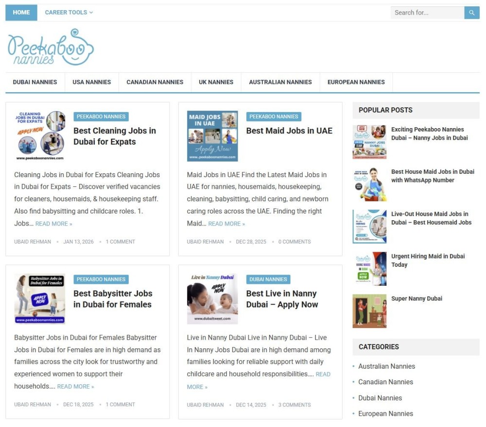 PeekabooNannies.com for SALE - An established, fully operational online platform connecting families with nannies, babysitters, housemaids, and domestic workers across Dubai, Abu Dhabi, and the wider UAE. This is a turnkey digital business ready for immediate transfer to a new owner.