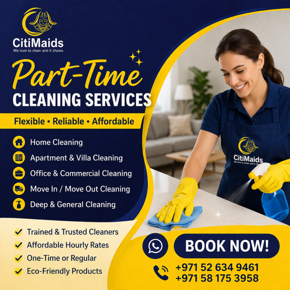 Citi Maids is a leading cleaning company in Abu Dhabi providing professional, reliable, and affordable cleaning services for homes, offices, apartments, and villas. Our experienced and trained cleaners are dedicated to delivering high-quality results, ensuring your space is spotless, hygienic, and fresh.