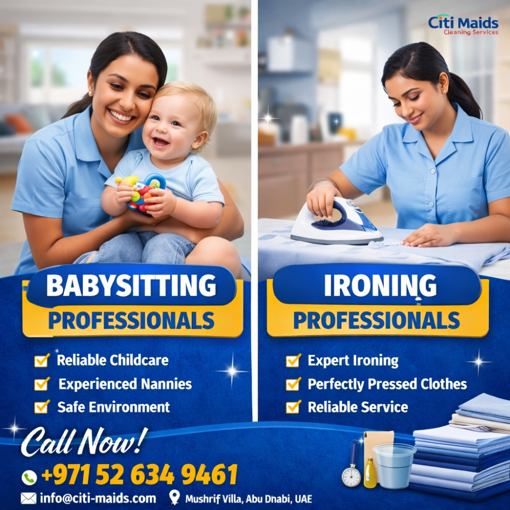Looking for reliable babysitting services in Abu Dhabi? Citi Maids provides experienced and caring babysitters to ensure your child’s safety, comfort, and happiness. Our trained caregivers offer professional child care services tailored to meet the needs of modern families.